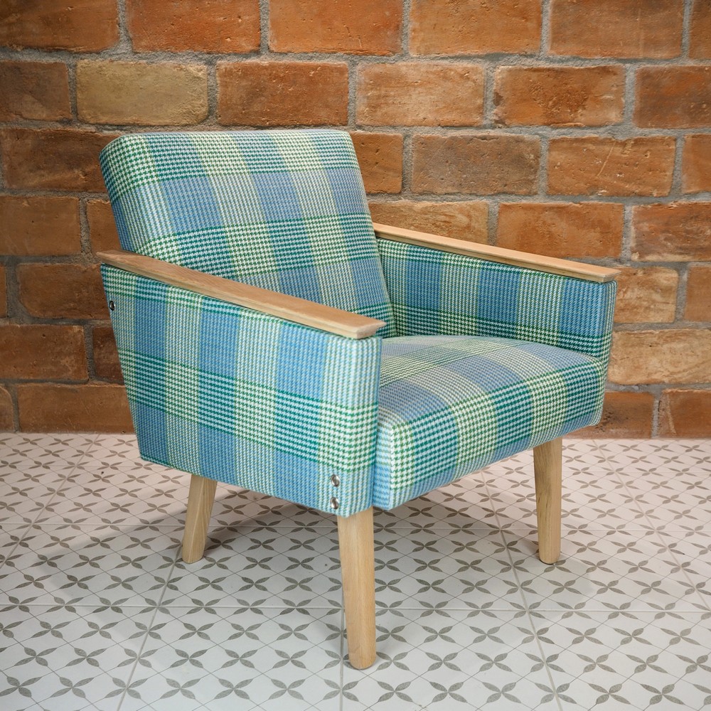 Toto křesílko ze 60. let máme skladem. Rádi je pro vás nově očalouníme a opravíme dřevěné části. Je možné si vybrat potahovou látku. V dílně máme k nahlédnutí spoustu vzorníků nadčasových potahových látek.